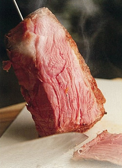 63~68℃の源泉熱を利用した低温調理により、しっとりと柔らか、見た目にも美しいロゼ色のお肉に変身します。